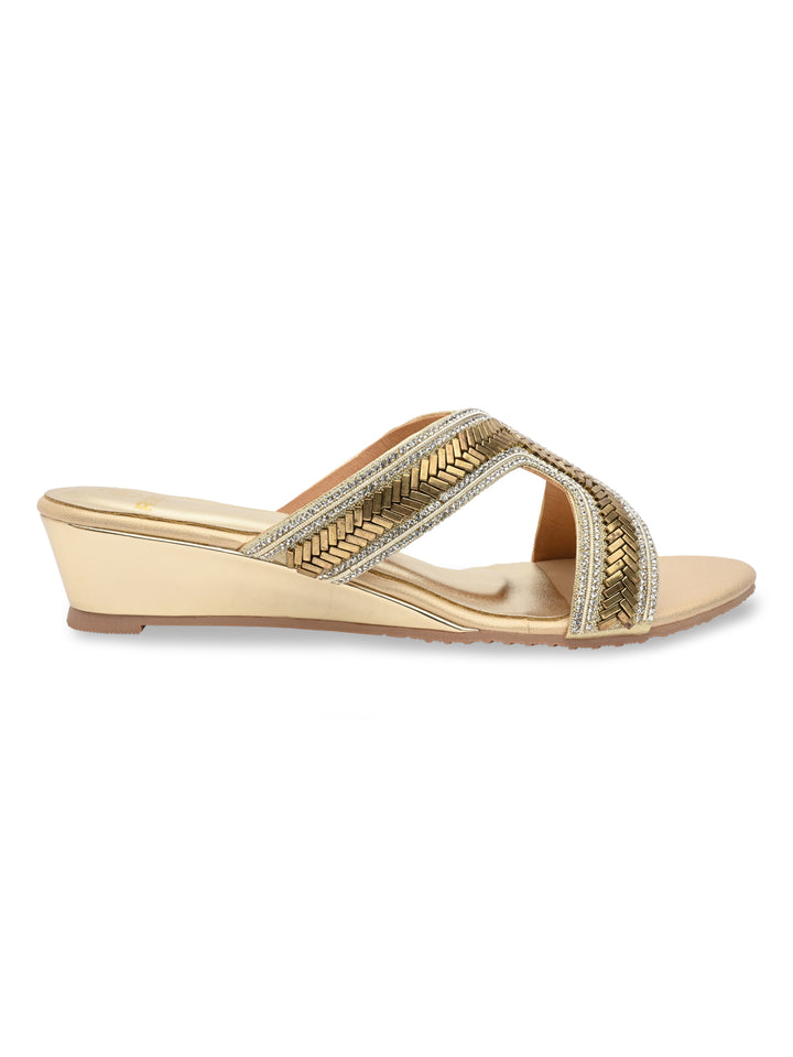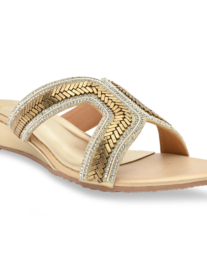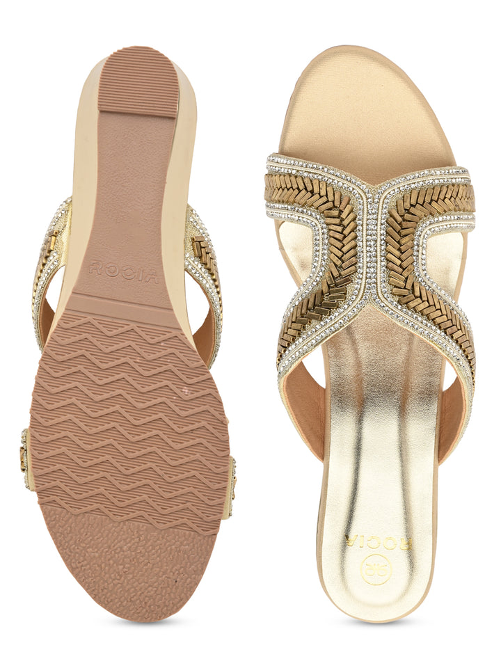Rocia By Regal Gold Women Embroidered H Wedges