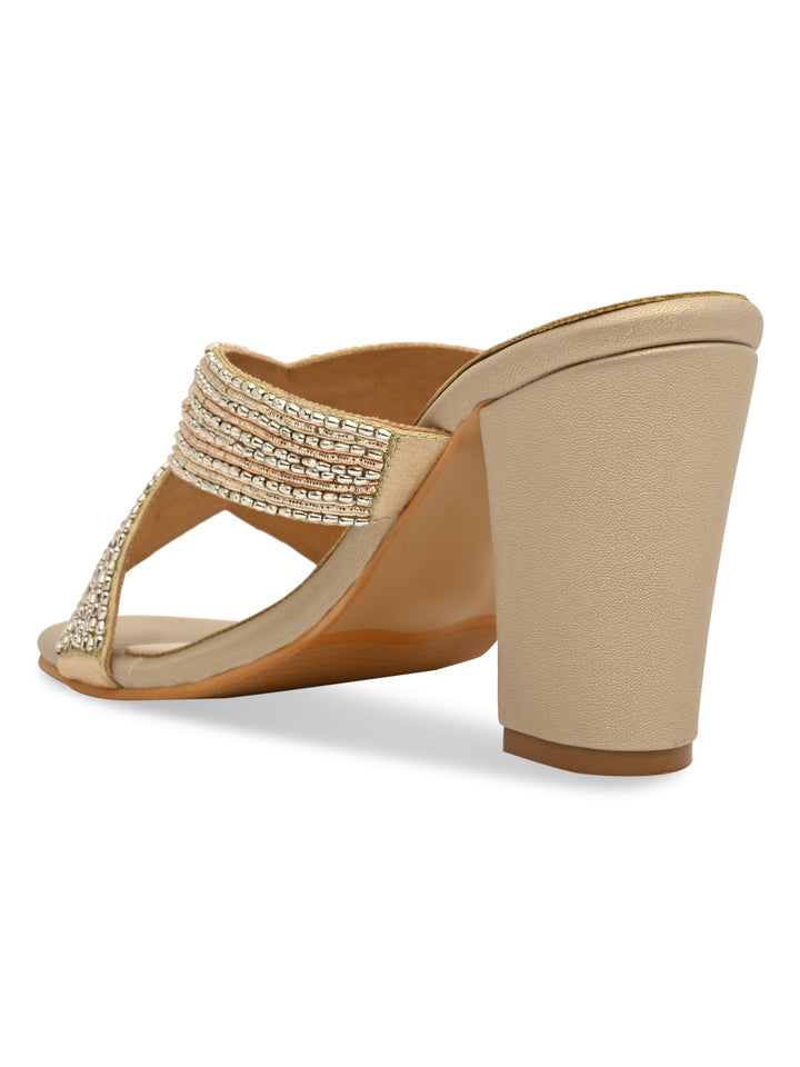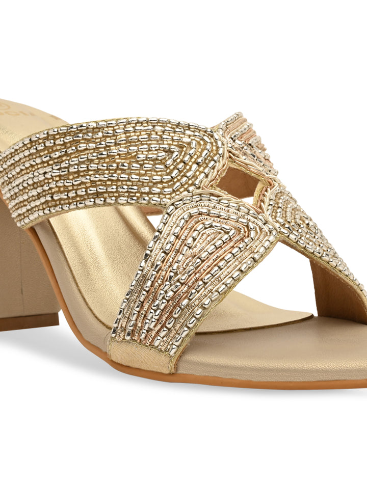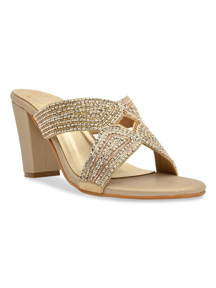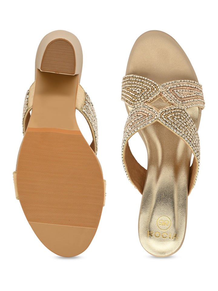 Rocia By Regal Gold Women Heavy Embroidered Block Heels