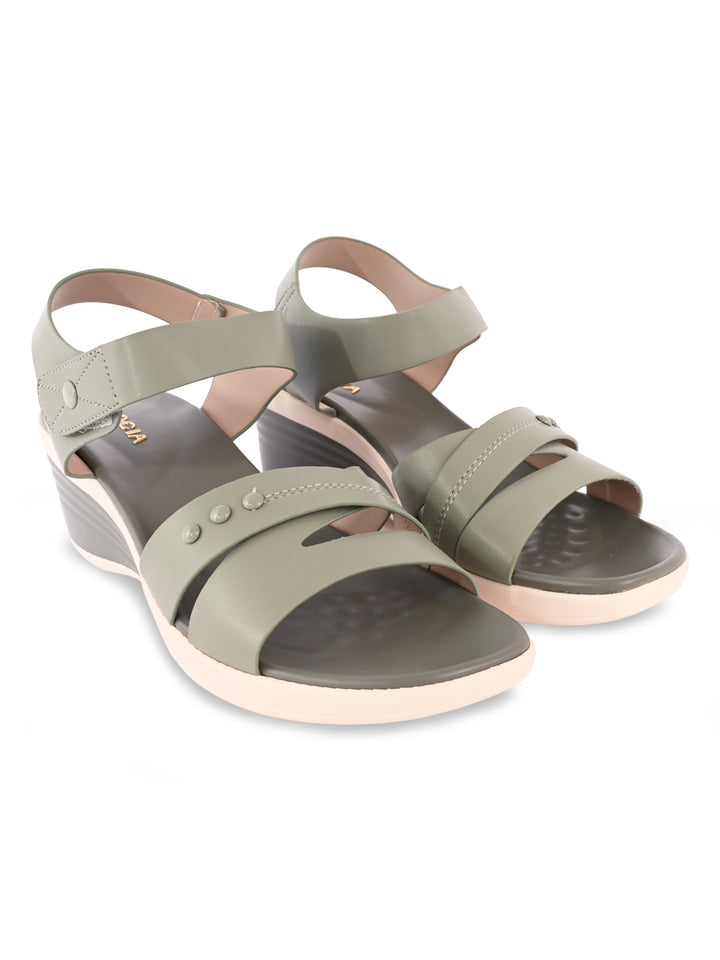 Rocia By Regal Green Women Comfort Wedge Sandals
