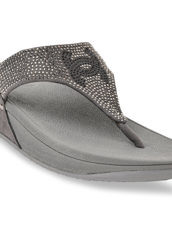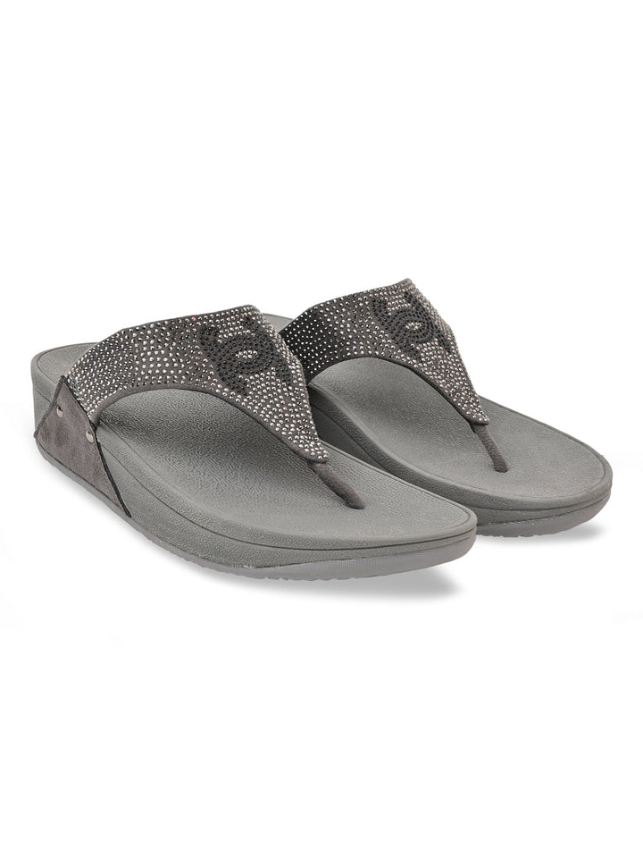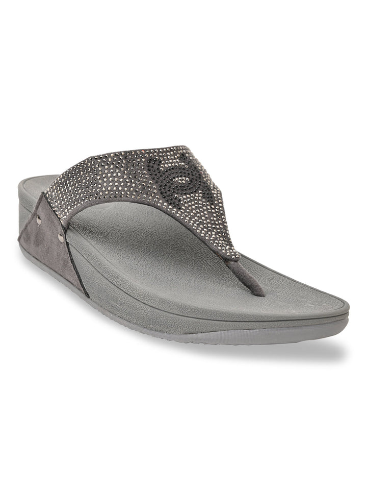 Rocia By Regal Grey Women Diamond Studded Comfort Wedges