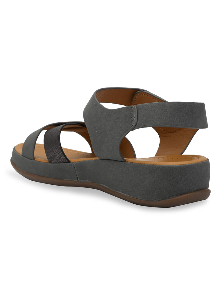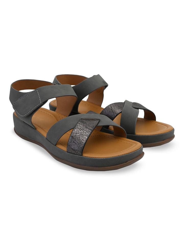 Rocia By Regal Gun Metal Women Casual Comfort Flat Sandals