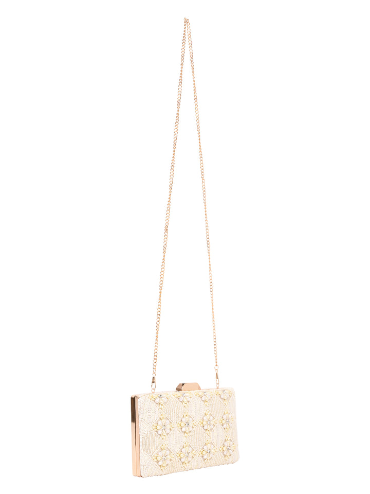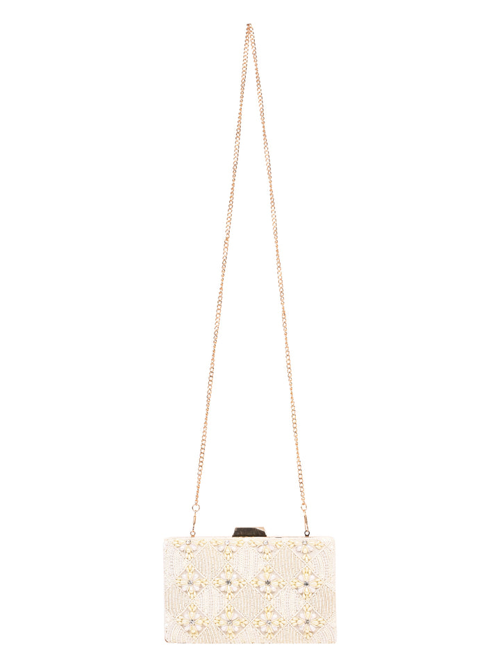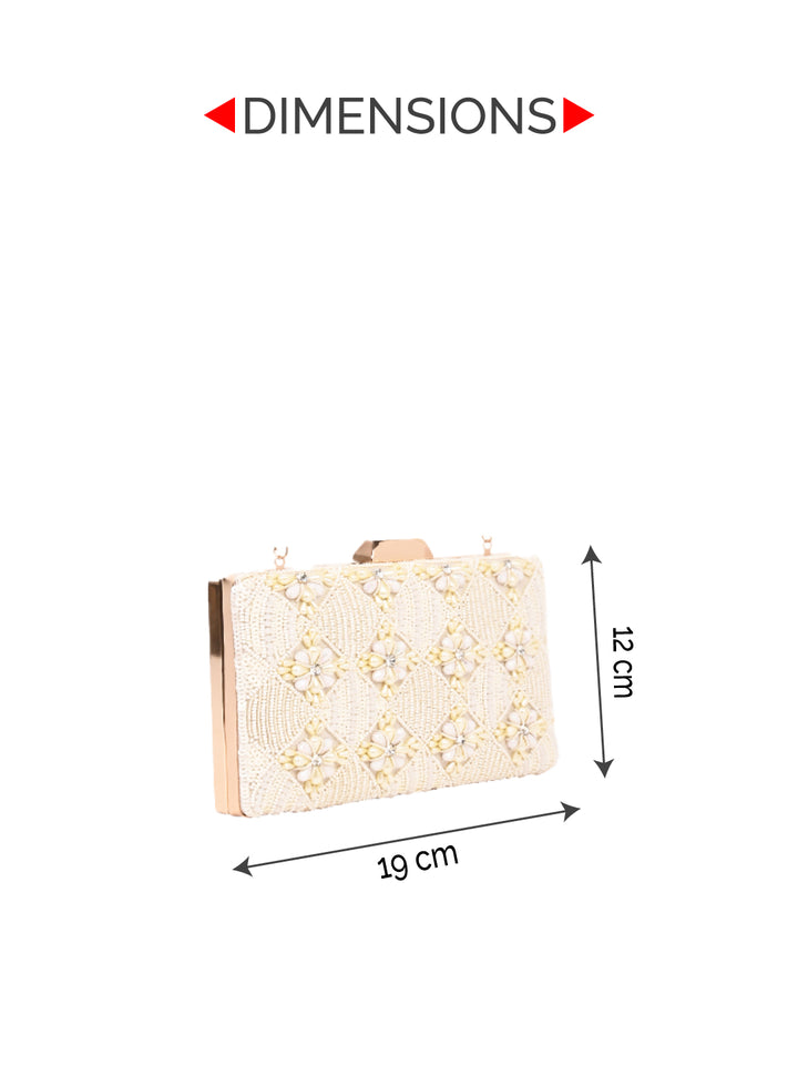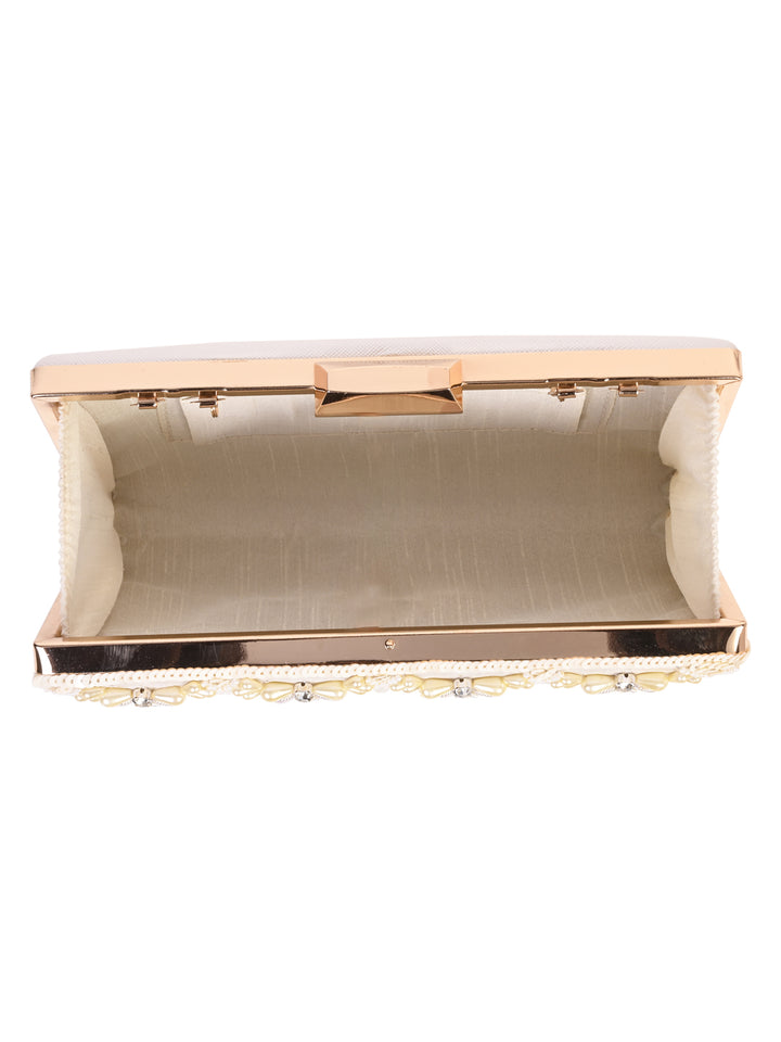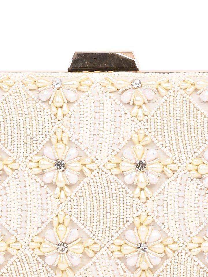 Rocia By Regal Ivory Women Hand Embroidered Metal Frame Clutch