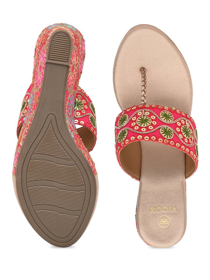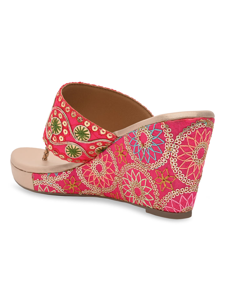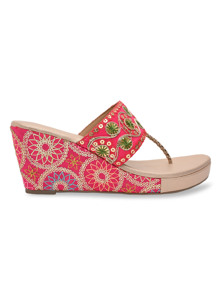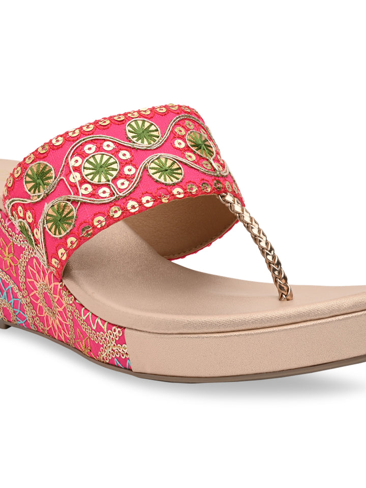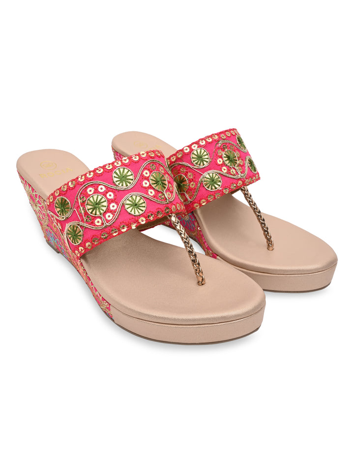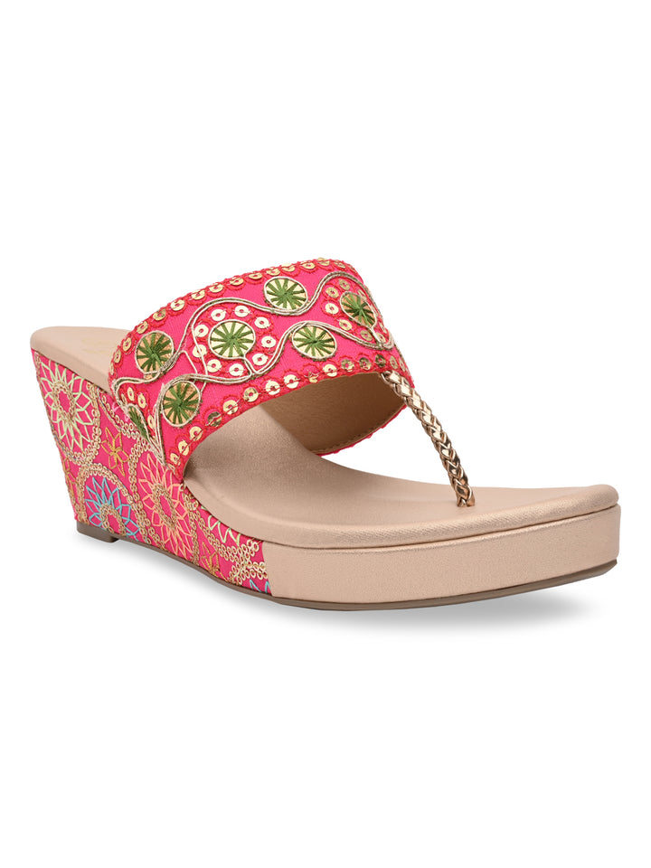 Rocia By Regal Pink Women Ethnic Lace Platforms