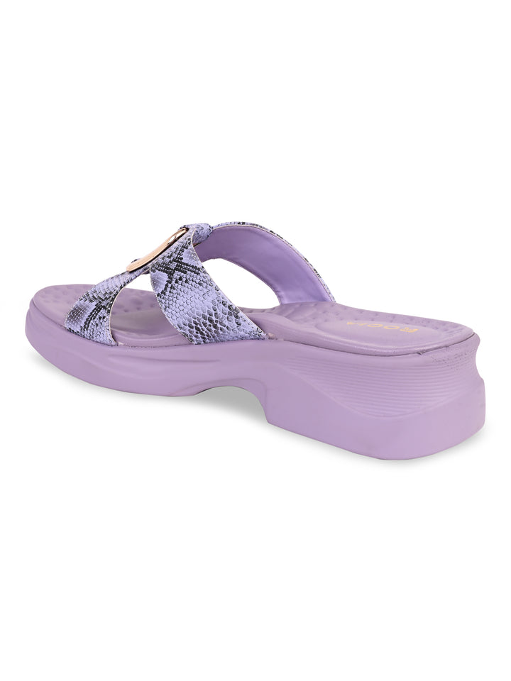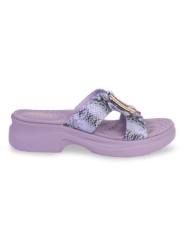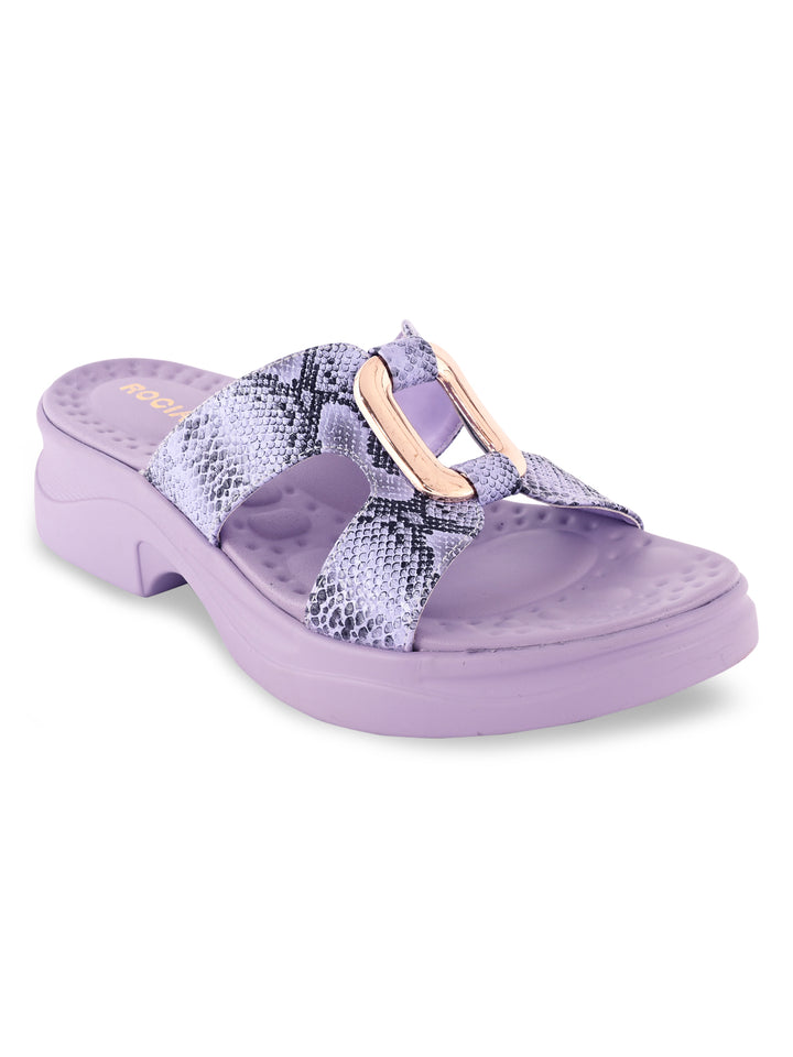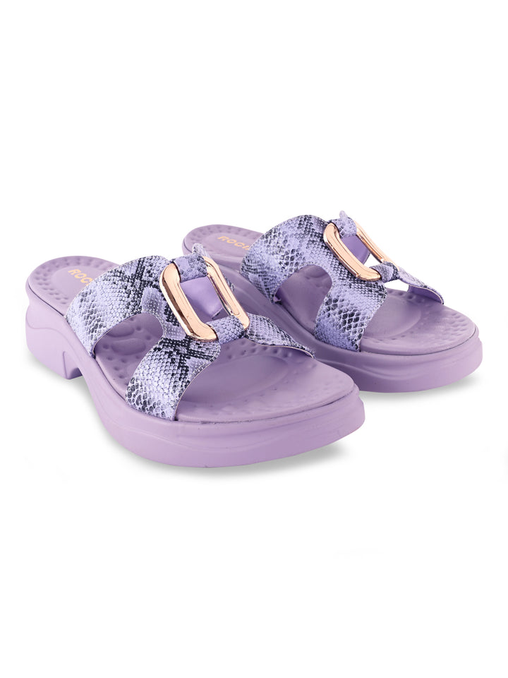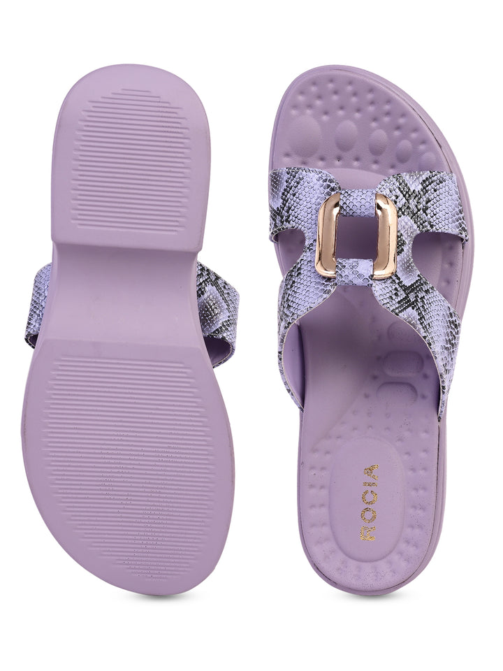 Turn heads with Women Snake Skin Funky Flats from Rocia by Regal, where bold design meets everyday comfort. Made with a synthetic upper and cushioned PU sole, these wedge-heeled sandals feature a chic open-toe, strapless look finished with a snake-skin texture. A playful pick for casual outings, they bring personality and flair to your summer style.