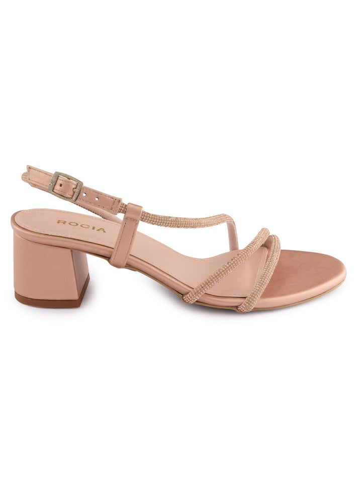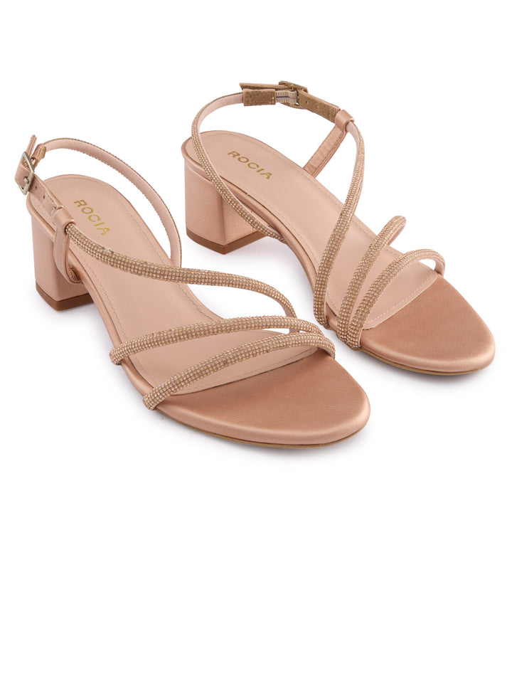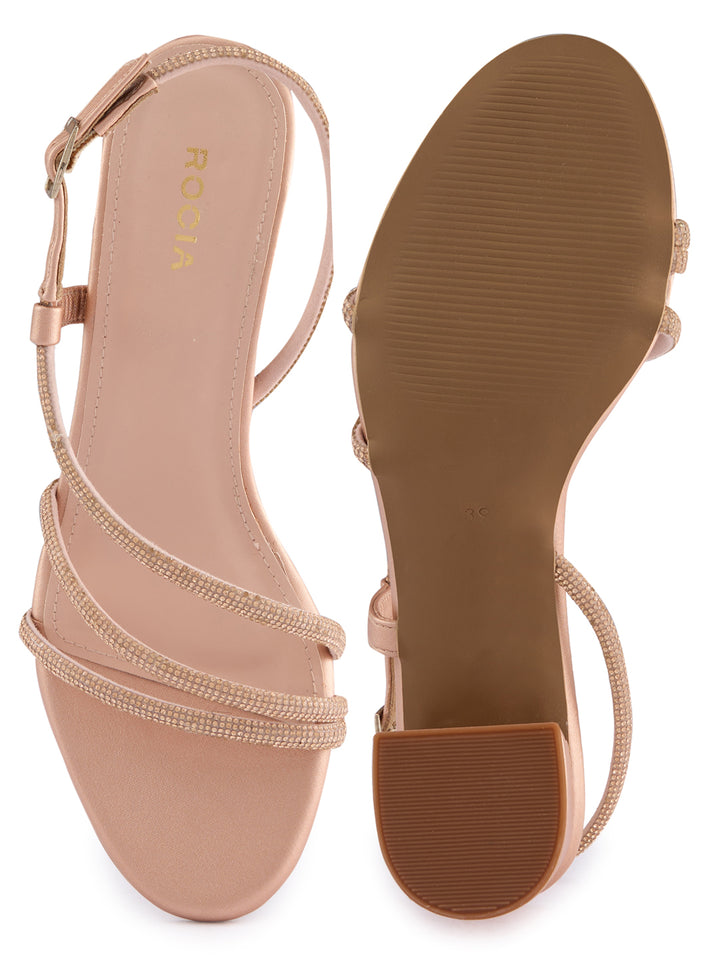Rocia By Regal Rose Gold Women Diamond Embellished Block Heel Sandals