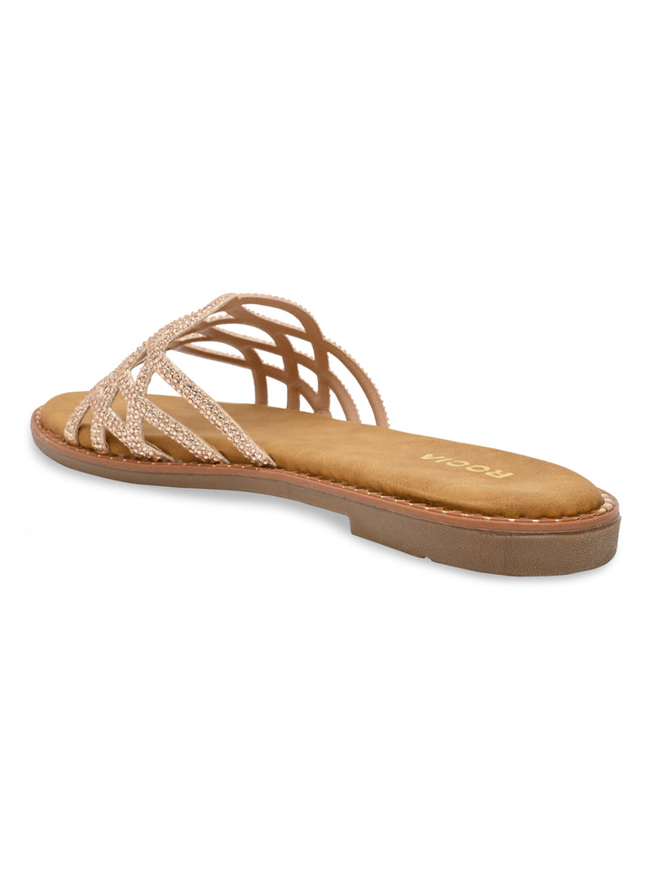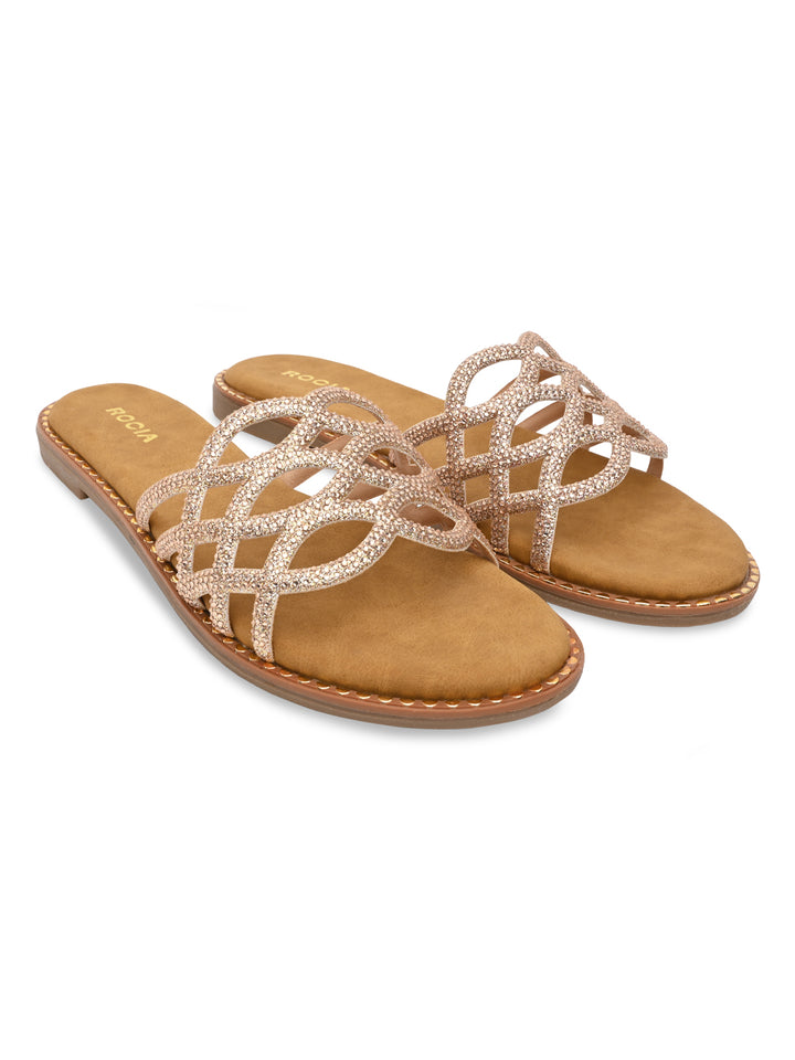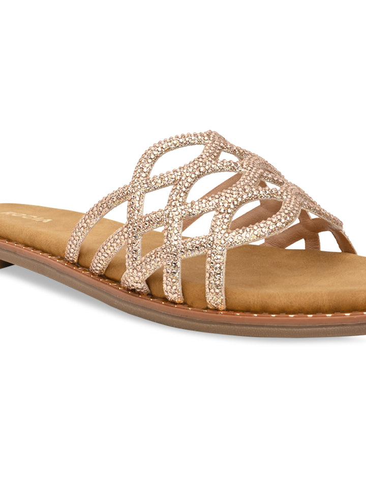 Rocia By Regal Rose Gold Women Diamond Embellished Criss Cross Flats