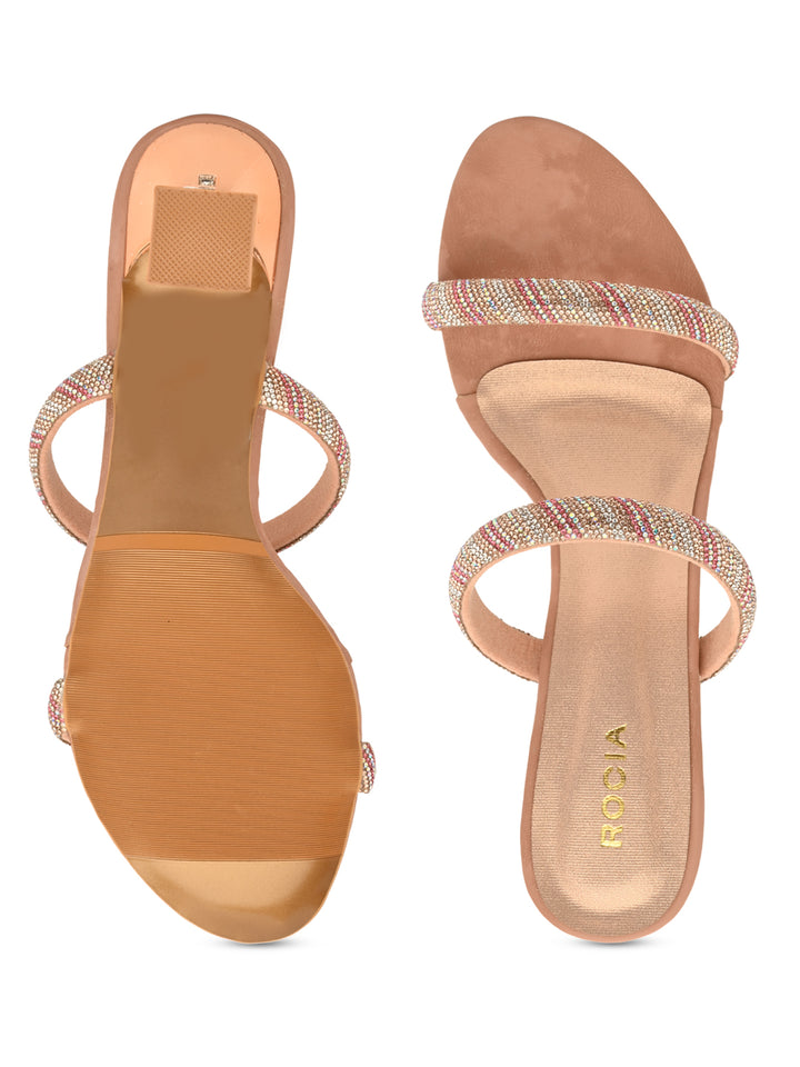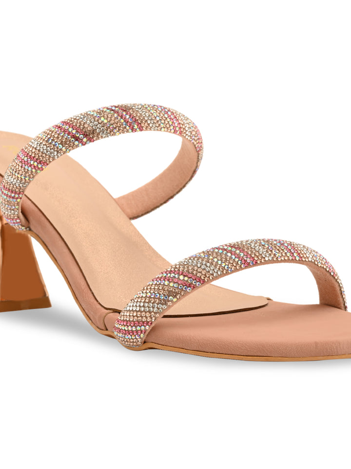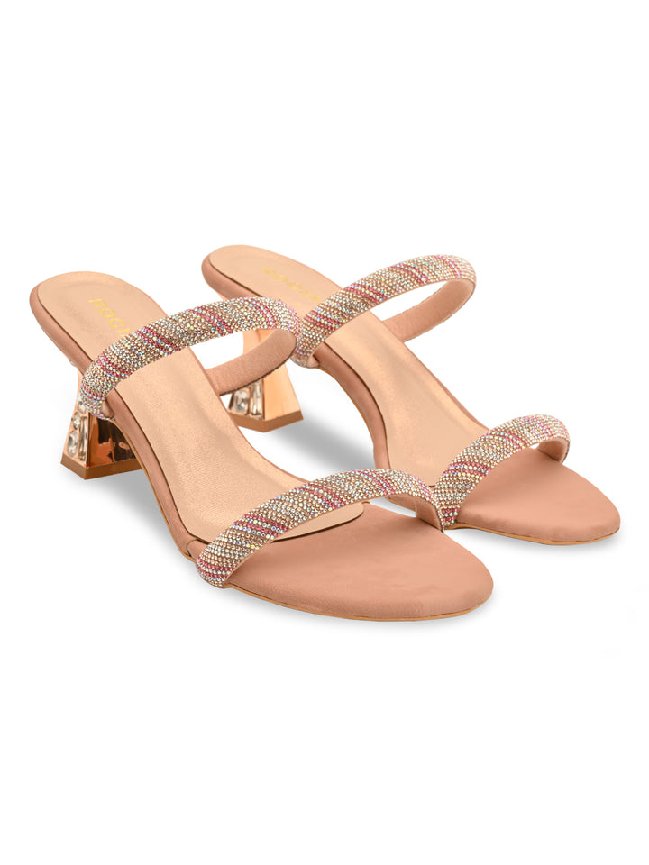 Rocia By Regal Rose Gold Women Diamond Studded Jeweled Heel Stilettos