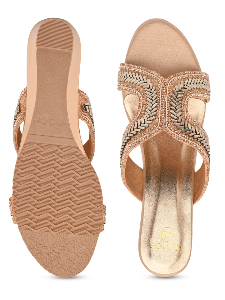 Rocia By Regal Rose Gold Women Embroidered H Wedges