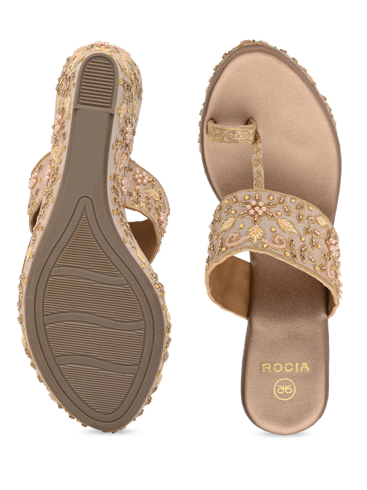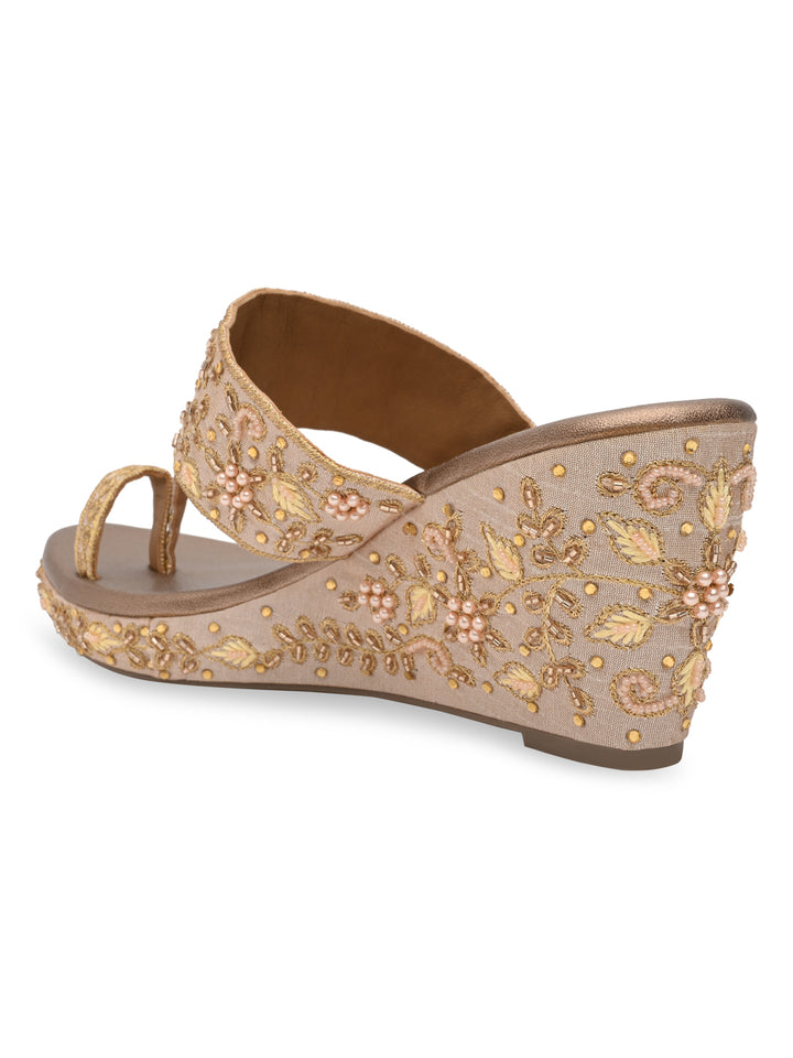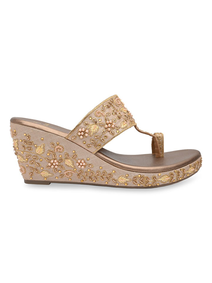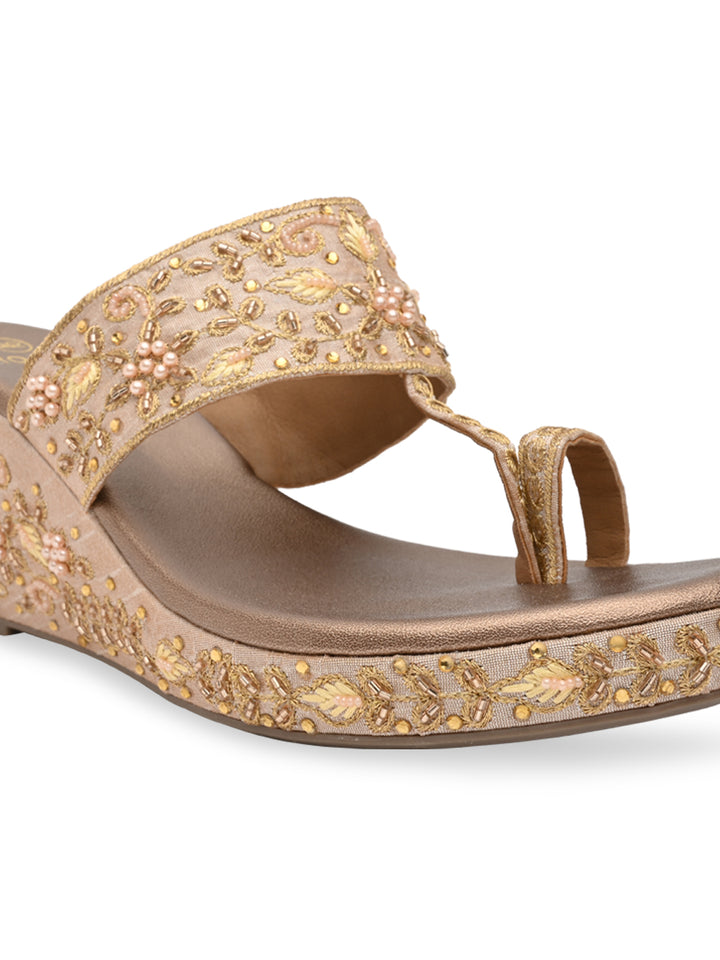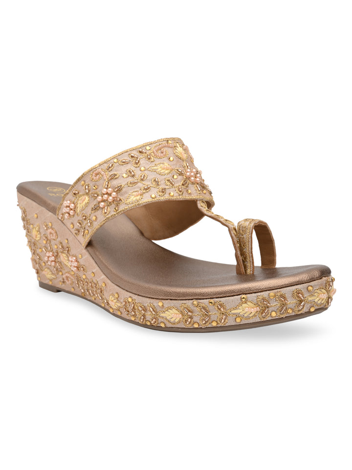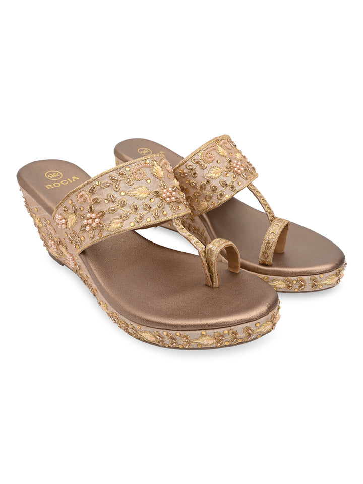 Rocia By Regal Rose Gold Women Heavy Embroidered One Toe Platforms