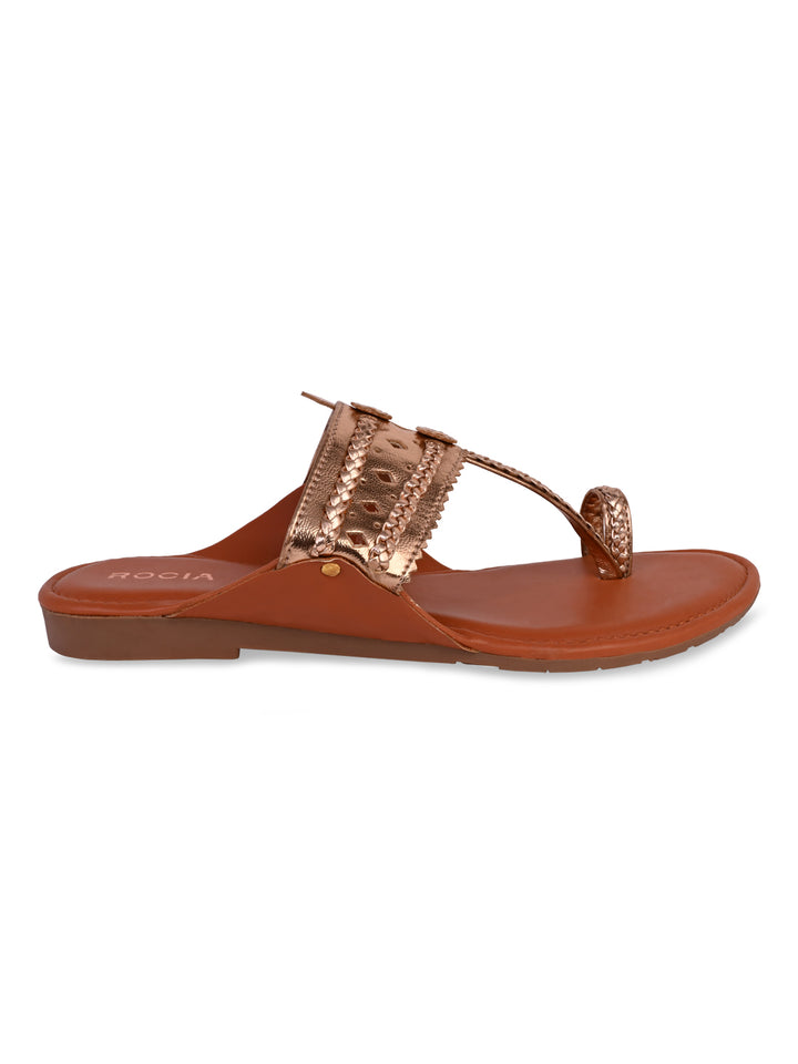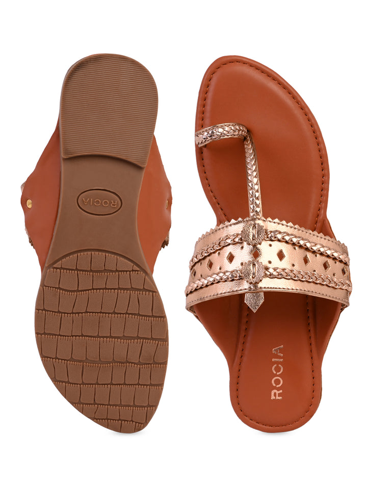 Rocia By Regal Rose Gold Women Metallic Flat Kolhapuris