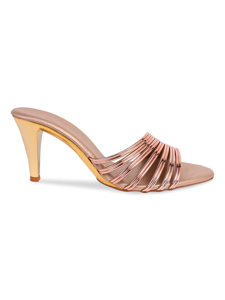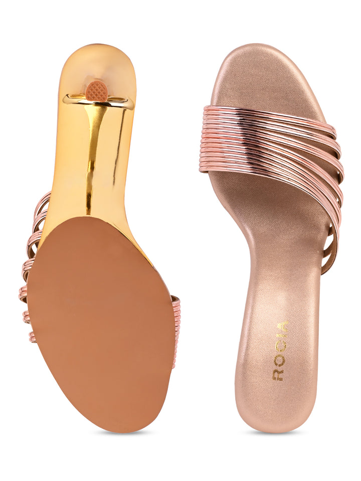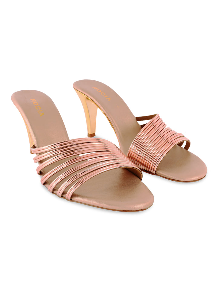Rocia By Regal Rose Gold Women Metallic Strappy Stilettos