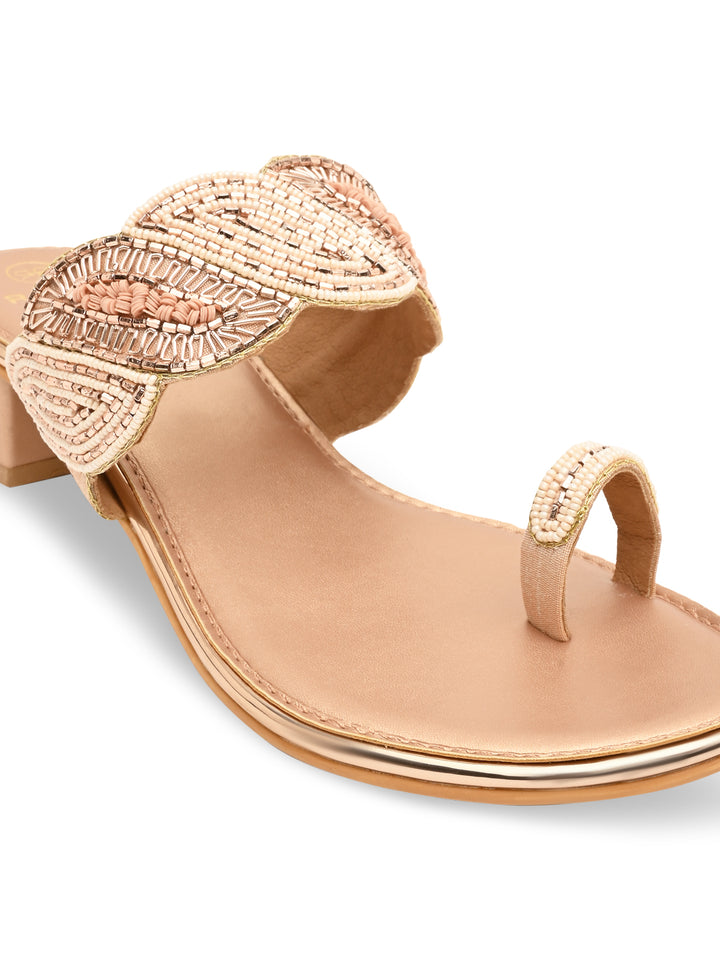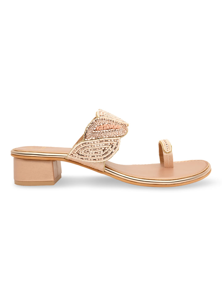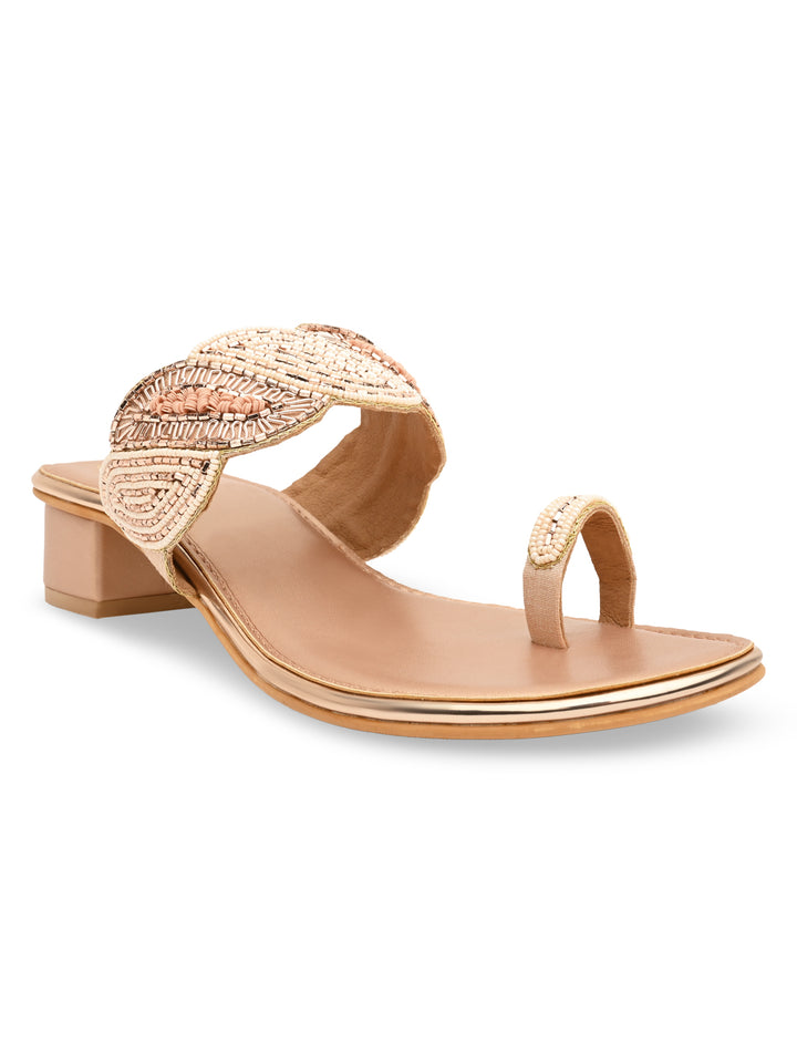 Rocia By Regal Rose Gold Women One Toe Embroidered Block Heels