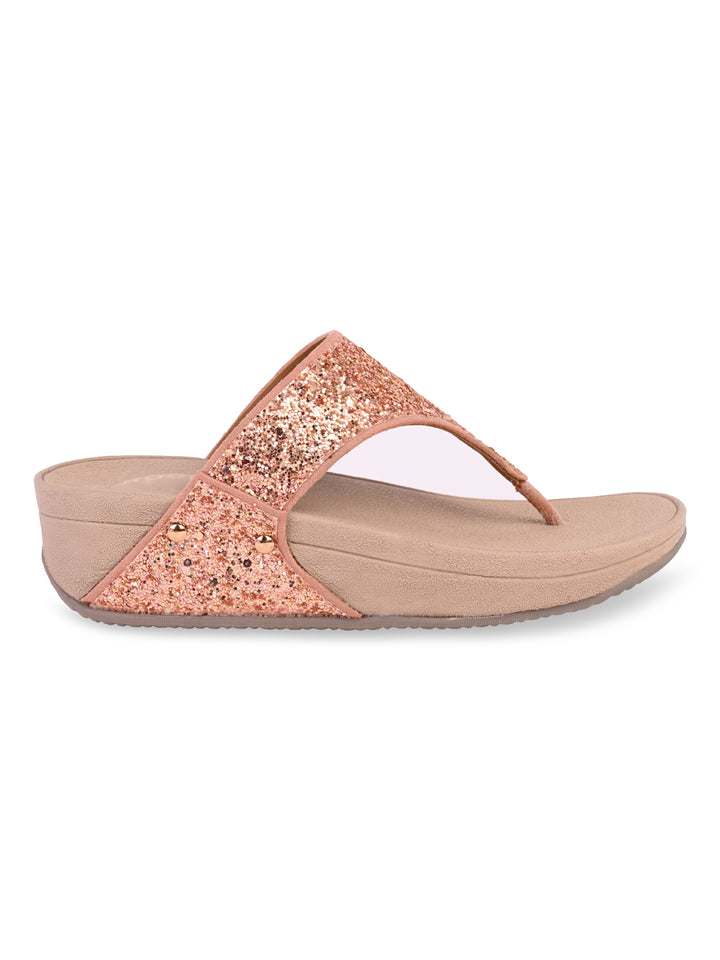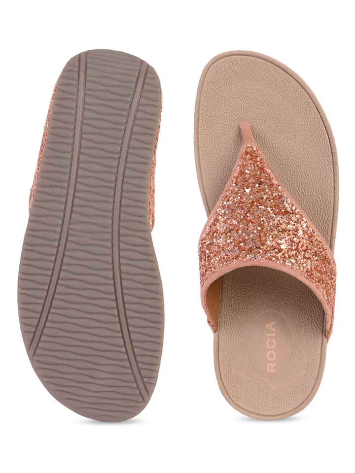 Add a sparkle to your look with Women Shimmer Flats from Rocia by Regal, designed with a glossy synthetic finish and supported by a durable TPR sole. Featuring a strapless silhouette and open-toe design, these wedge-heeled sandals strike the perfect balance between chic and comfortable. Ideal for casual gatherings, summer events, or festive evenings, they bring just the right amount of shine to any outfit.