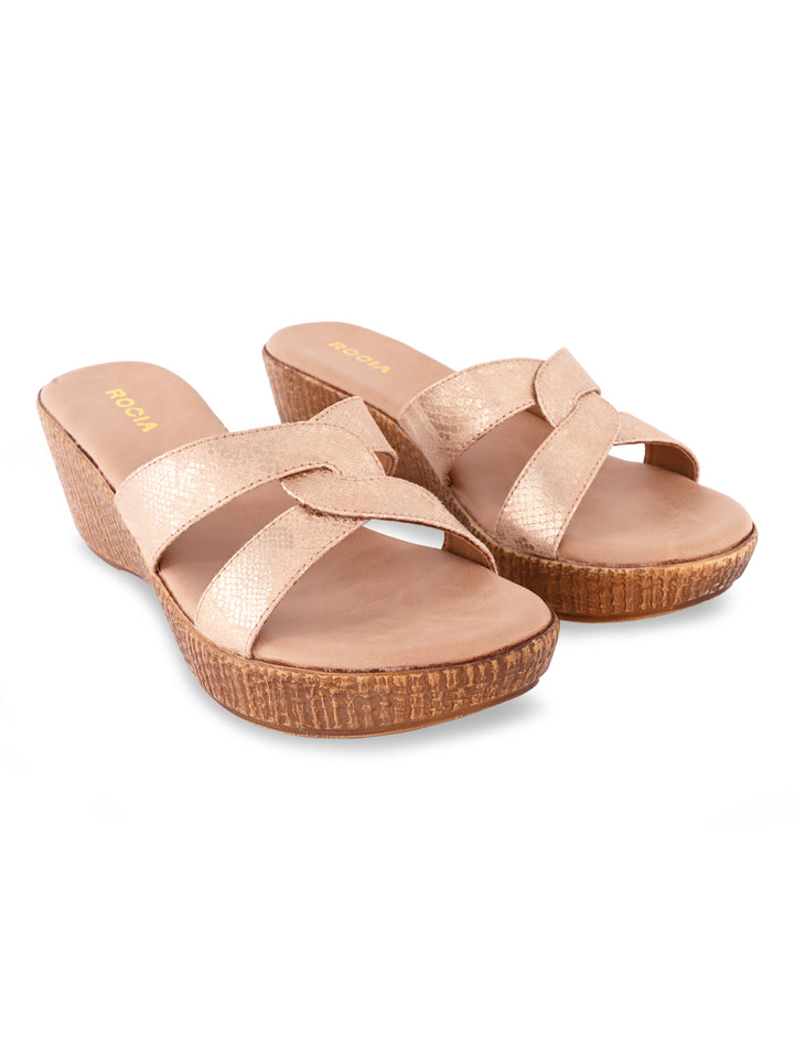 Rocia By Regal Rose Gold Women Shimmery Platform Sandals