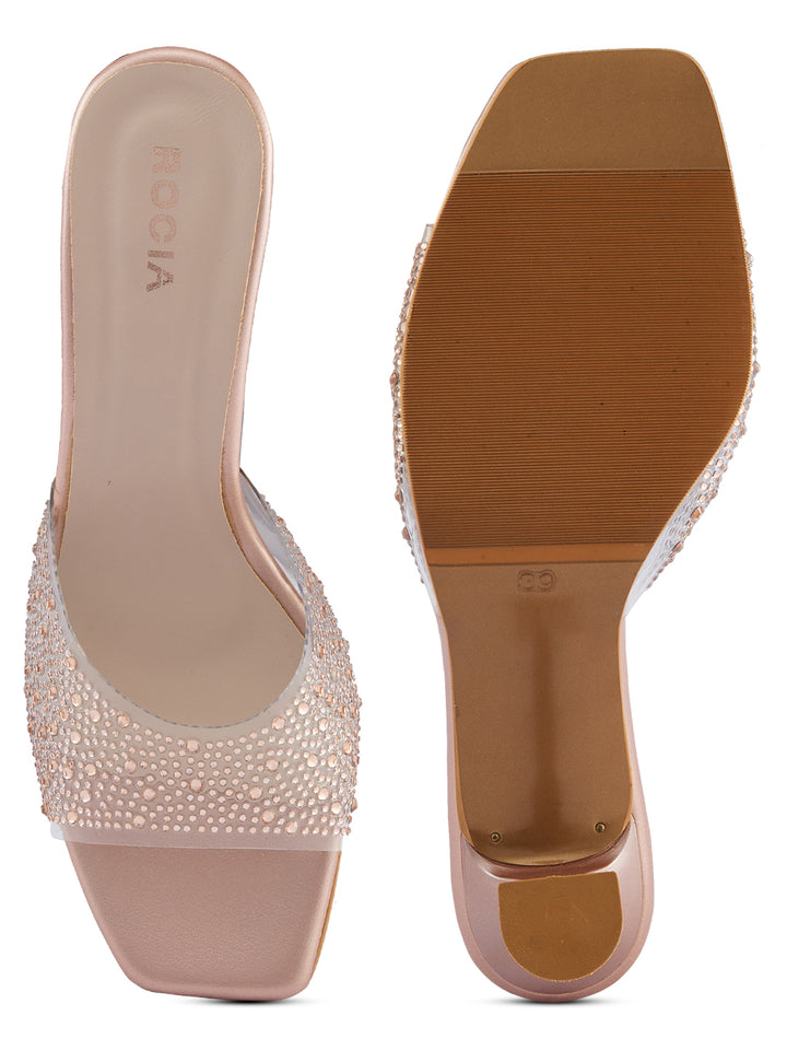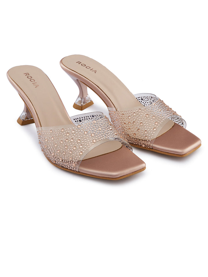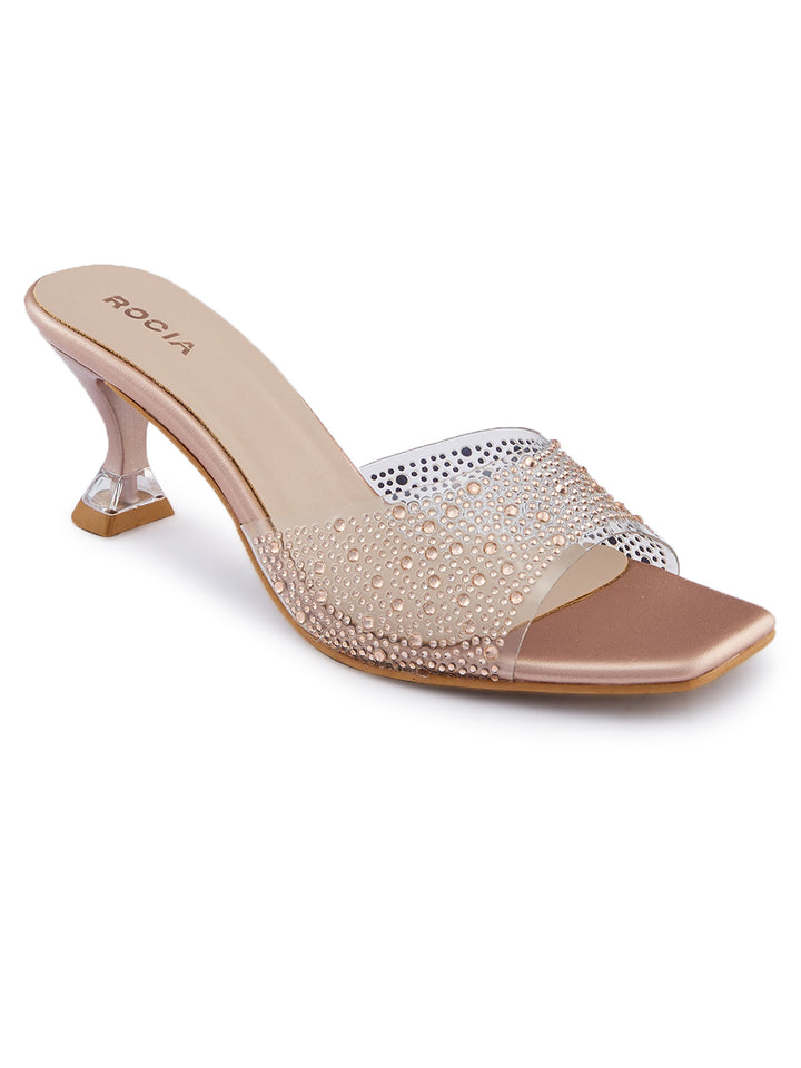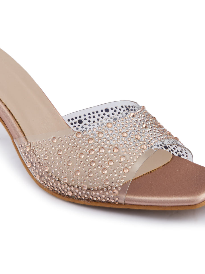 Rocia By Regal Rose Gold Women Vinyl Diamond Studded Stilettos
