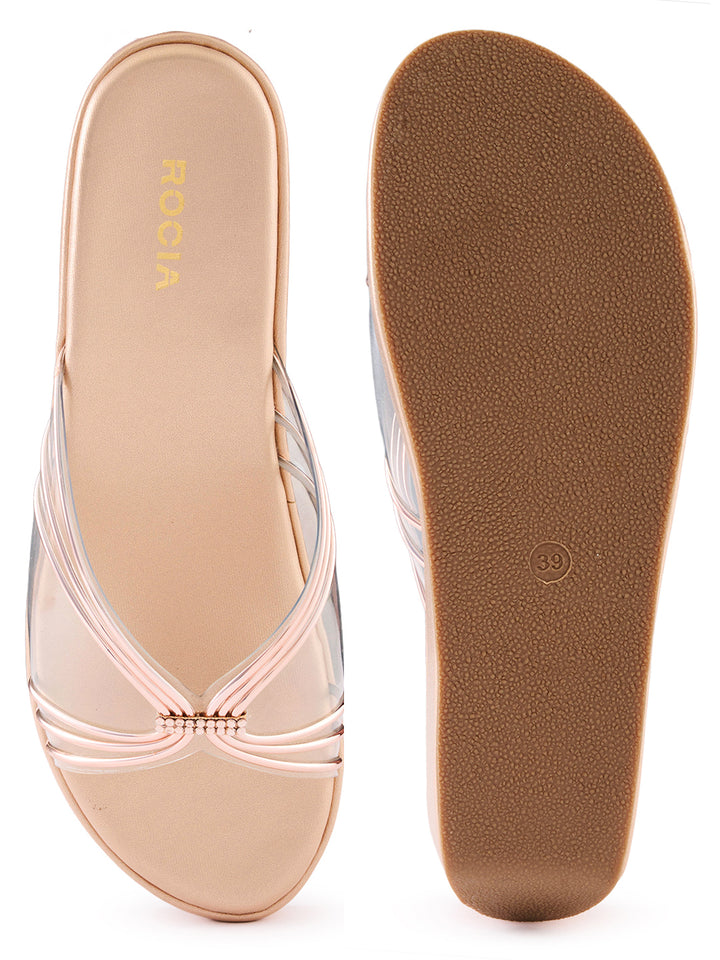 Make a trendy statement with Rocia by Regal Women Vinyl Platforms in Black and Rose Gold. These 3-inch synthetic platform heels come with TPR soles, open round toes, and a sleek slip-on design ideal for casual summer wear.