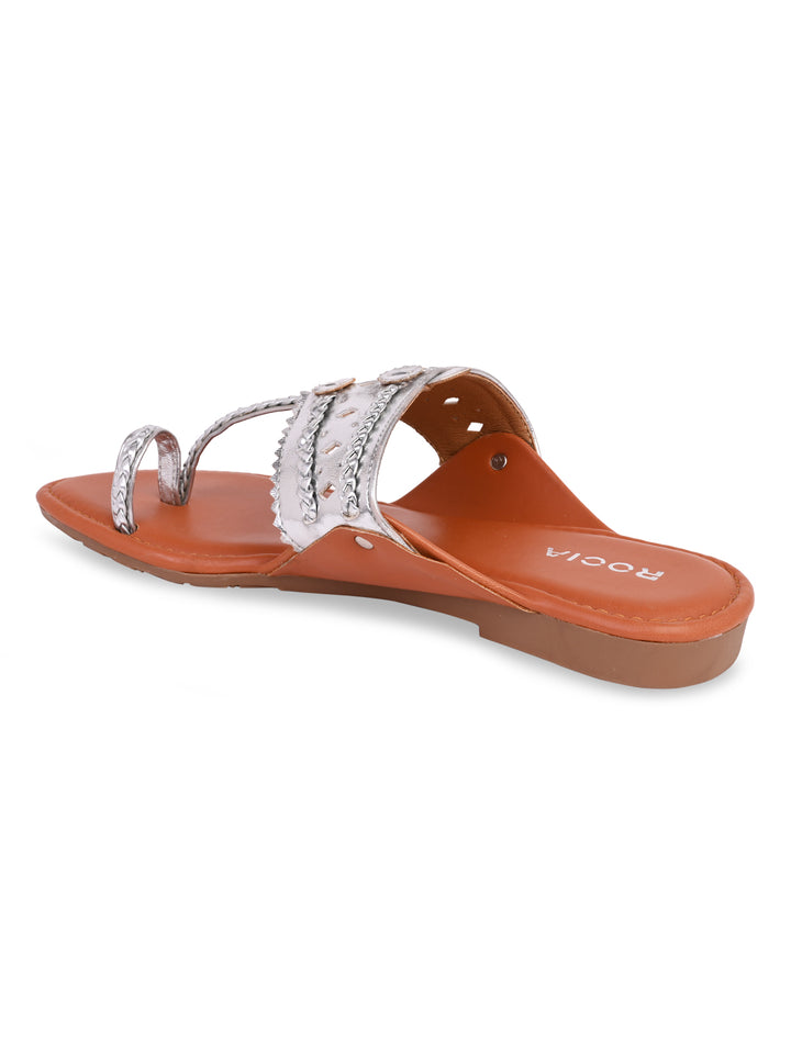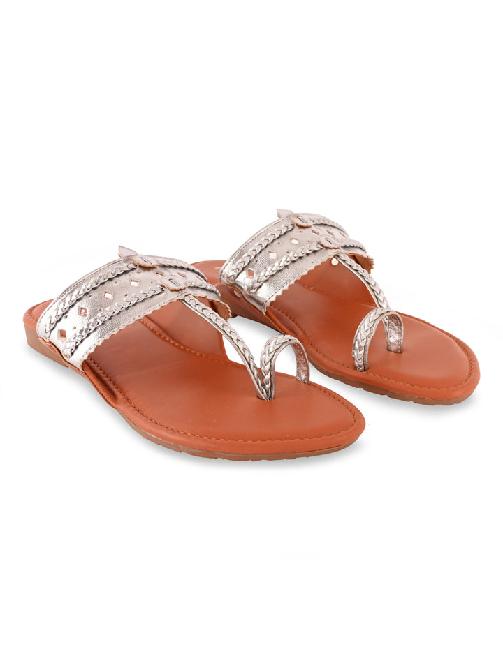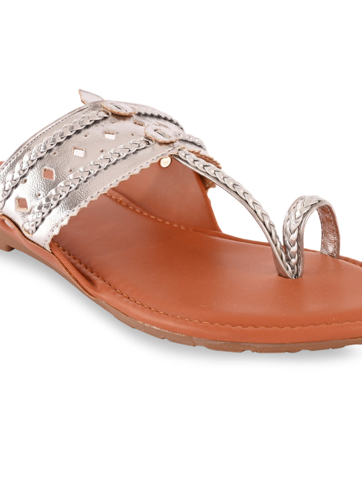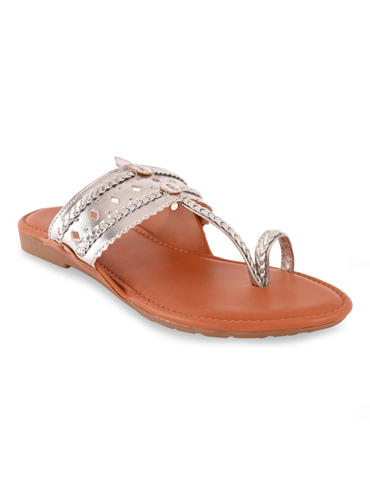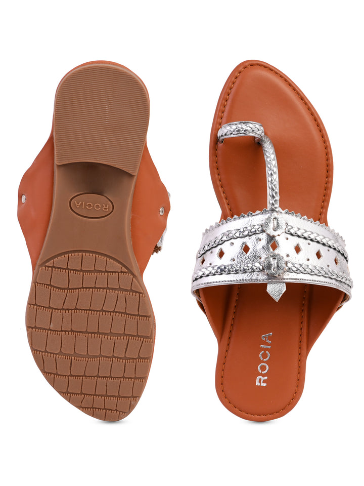Rocia By Regal Silver Women Metallic Flat Kolhapuris