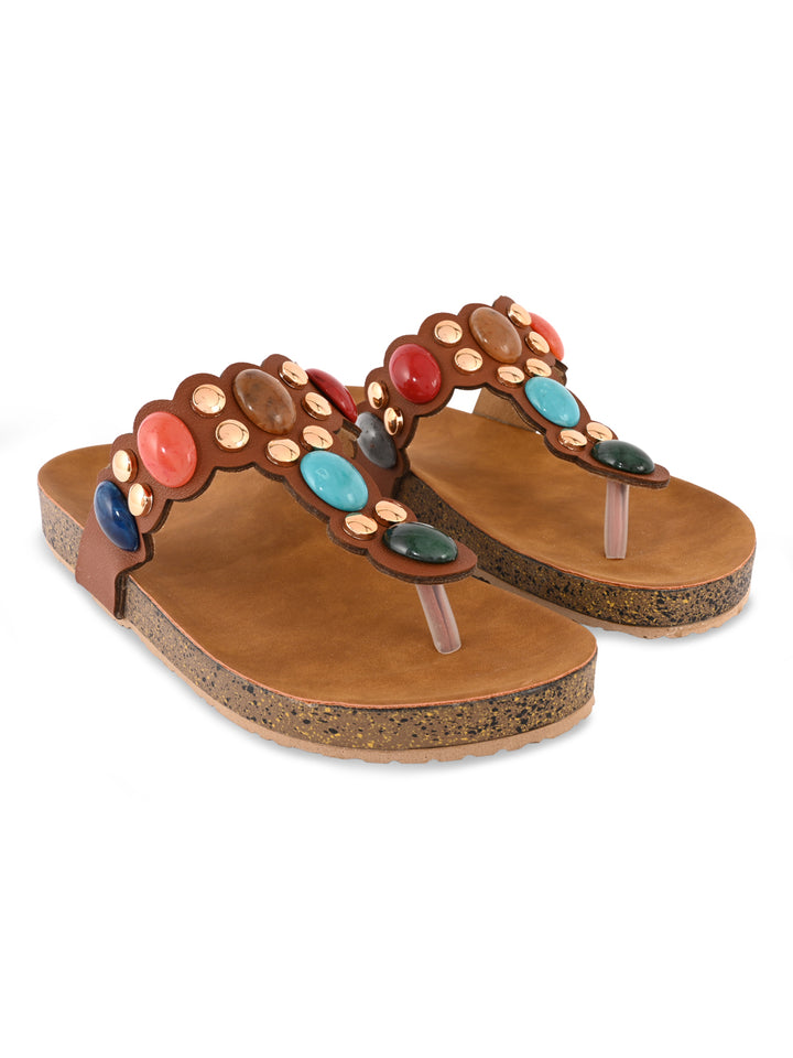 Add sparkle to your steps with Women Stone Embellished Flats from Rocia by Regal. Designed with a synthetic upper and sturdy TPR sole, these flats feature a chic strapless open-toe style decorated with elegant stone detailing. Ideal for casual wear and summer occasions, their flat heel provides effortless comfort while elevating your look with a touch of glam.
