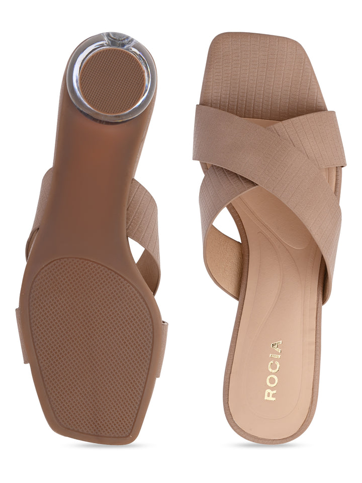 Rocia By Regal Taupe Women Textured Block Heel Slip Ons