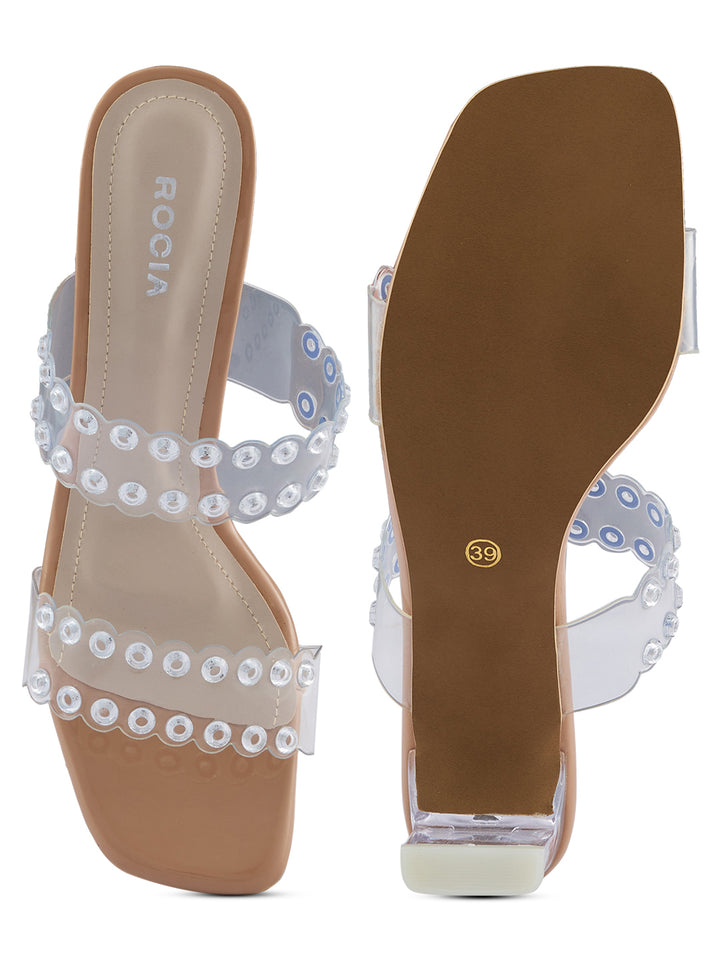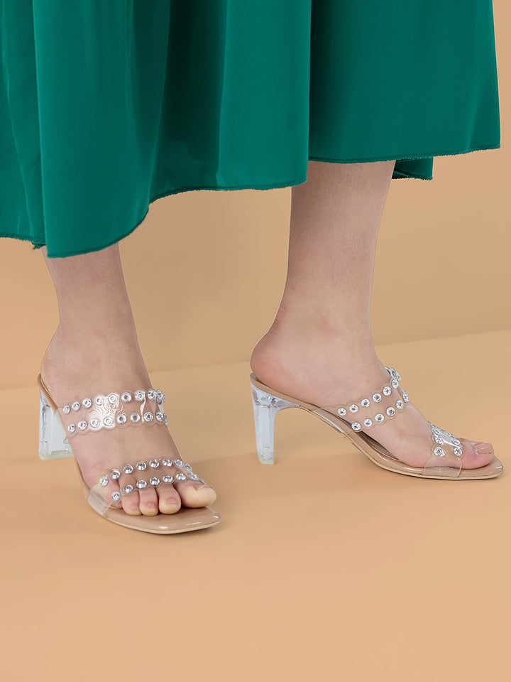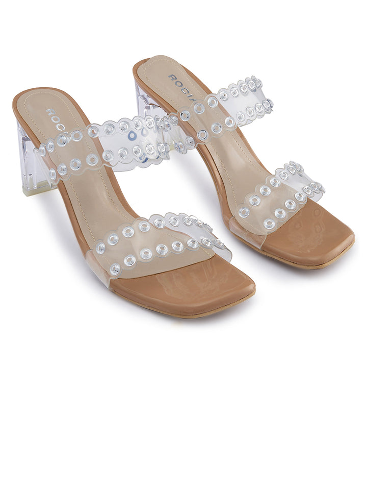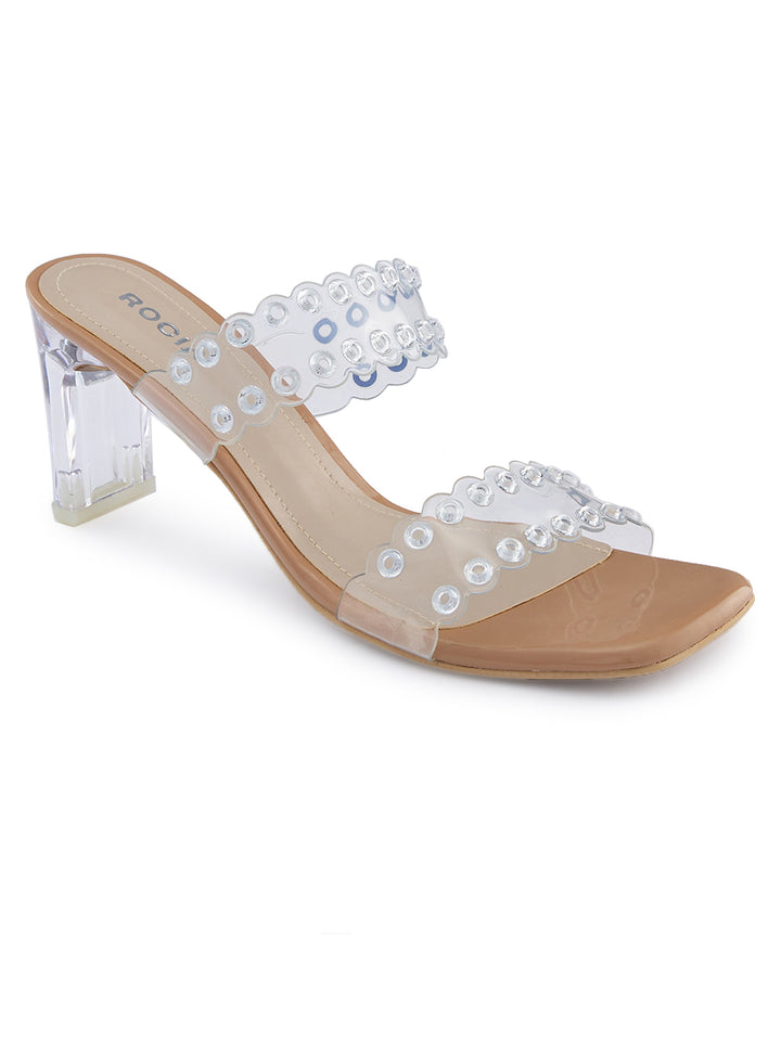 Rocia By Regal Transparent Women Vinyl Studded Acrylic Heels