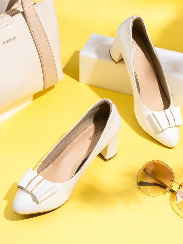 Rocia By Regal White Women Block Heel Pump With Bow Embellishment