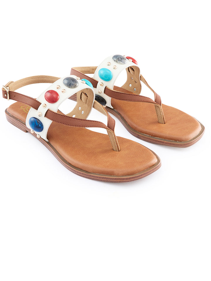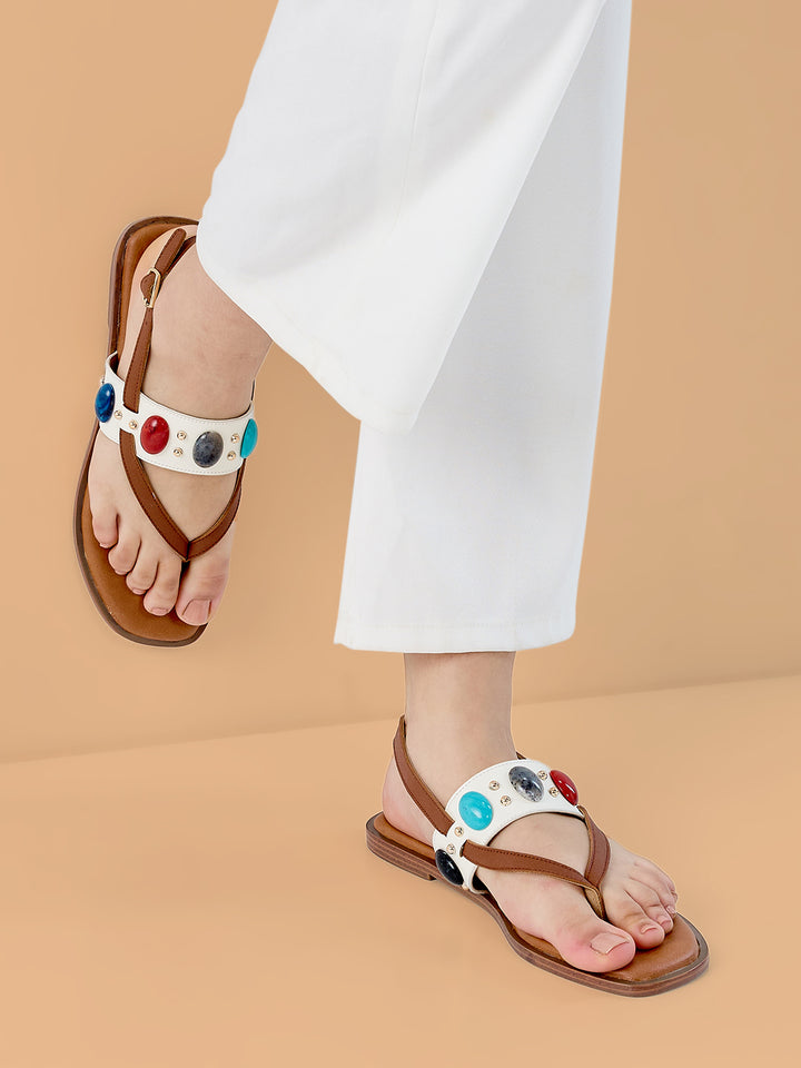 Rocia By Regal White Women Casual Beaded Flat Sandals