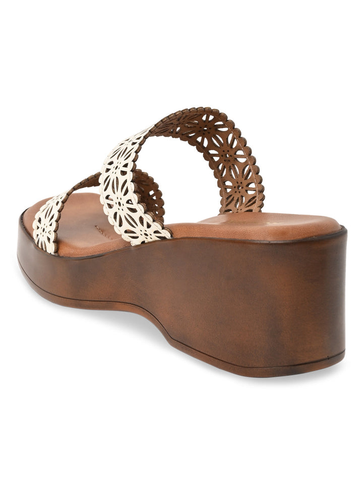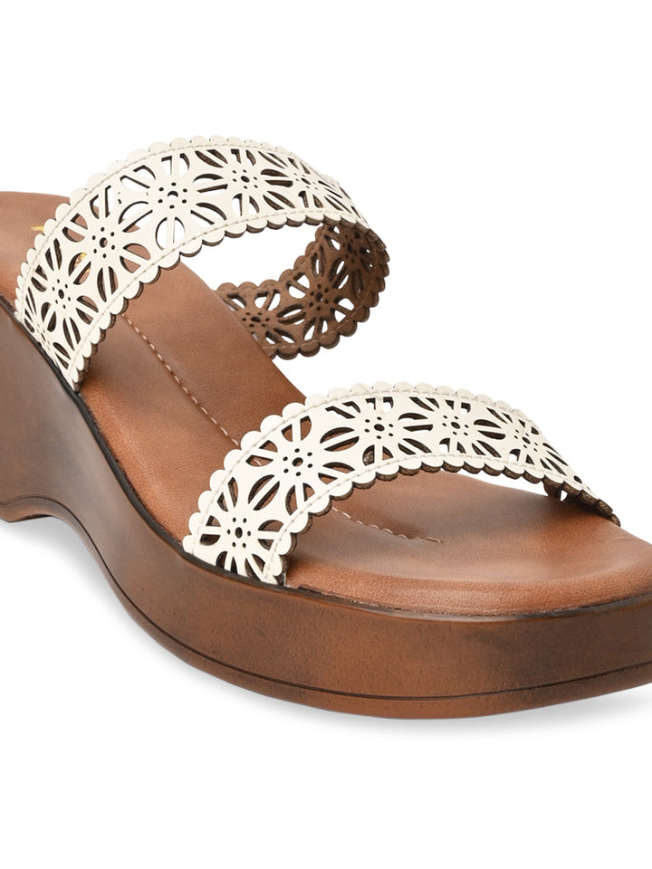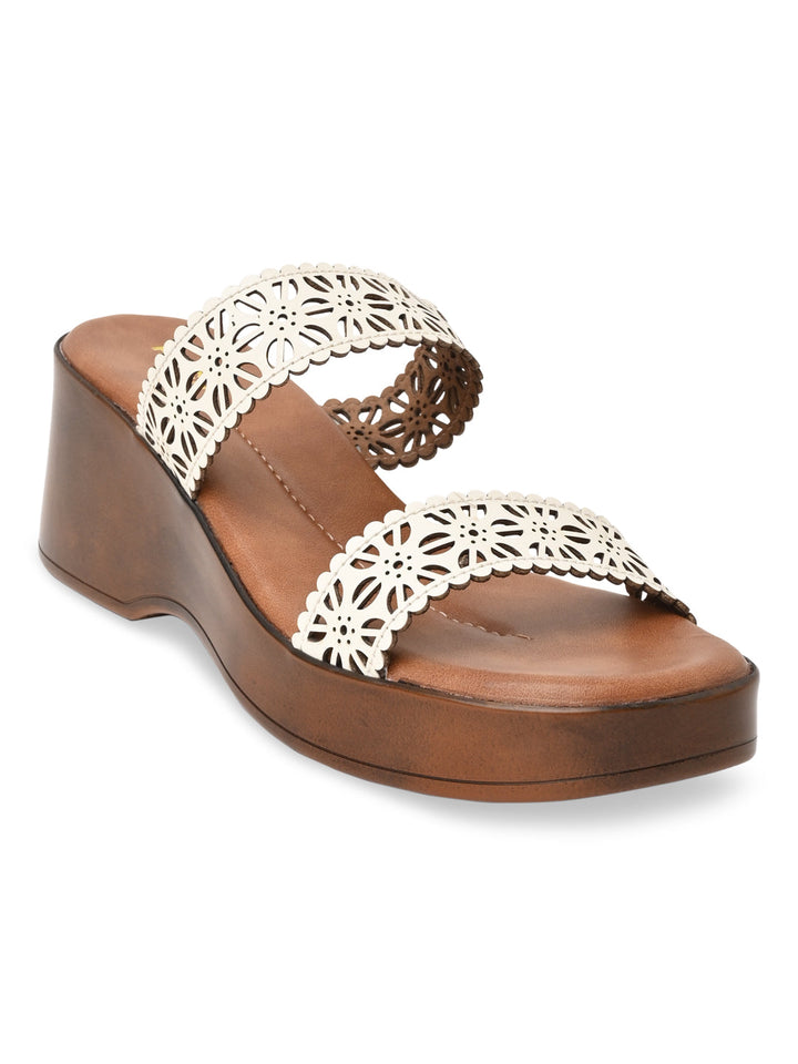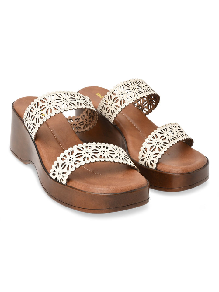 Rocia By Regal White Women Laser Cut Platforms